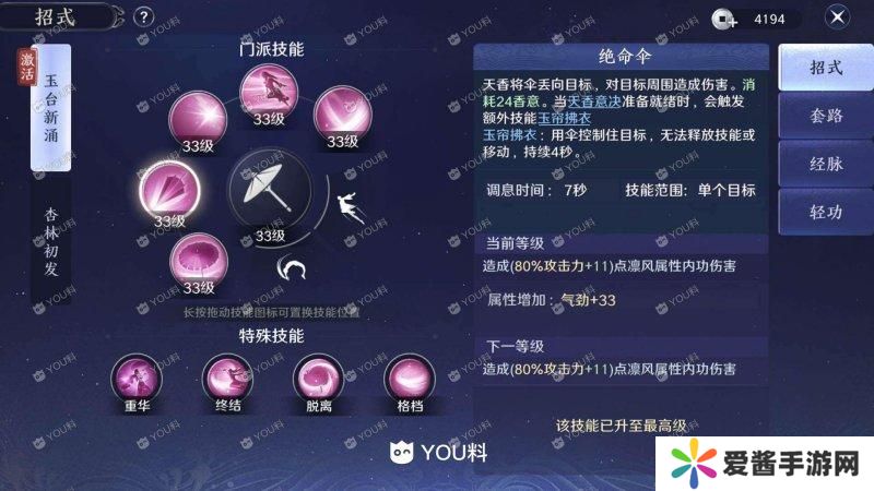 轻功如燕:提高移动速度和闪避率,使天香在战斗中更加灵活。