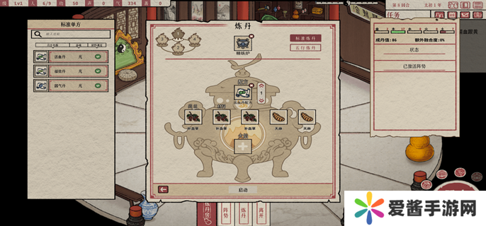炼丹炉:游戏中的炼丹炉有两种炼丹方式,即标准炼丹和五行炼丹。不需要特定的配方,只要材料放对,就有可能炼制出金灵丹。