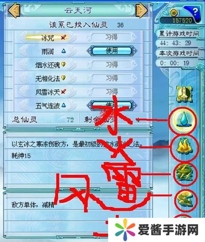 雷系:雷系仙术中的“雷咒”和“天罡战气”可以提供额外的攻击力和暴击率,适合天河这种近战角色。中期可以适当投入一些点数到雷系上。