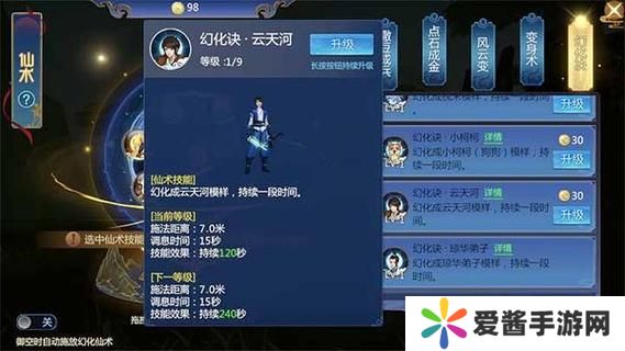 及时升级仙术:在游戏中,要及时升级仙术,以解锁更多的技能和效果。同时,也要注意提**河的等级和装备,以增强他的整体实力。
