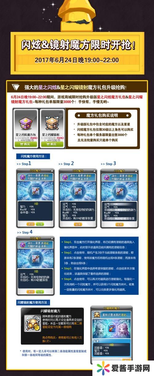 超级魔方主要用于洗练装备潜能,有一定的概率将装备从低品质升级到高品质。
