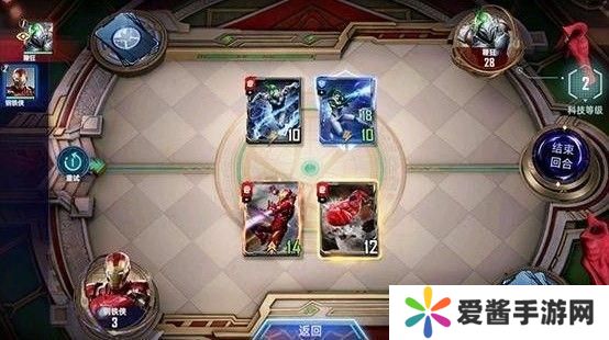 第四回合购买钢铁侠并放到最右边,利用其穿甲能力先手摧毁对面战力最低的角色。