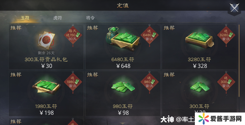 充值购买:玉符的主要获取途径是通过充值购买,这是最直接也最快速的方式。