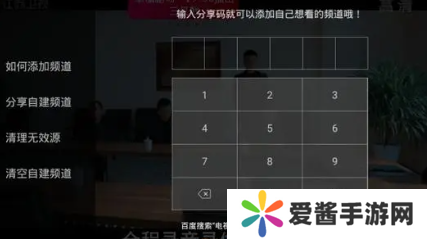 1、打开软件,进入主界面的二级菜单,点击【自建】按钮,随后选择【如何添加频道】,输入6位分享码并确认。