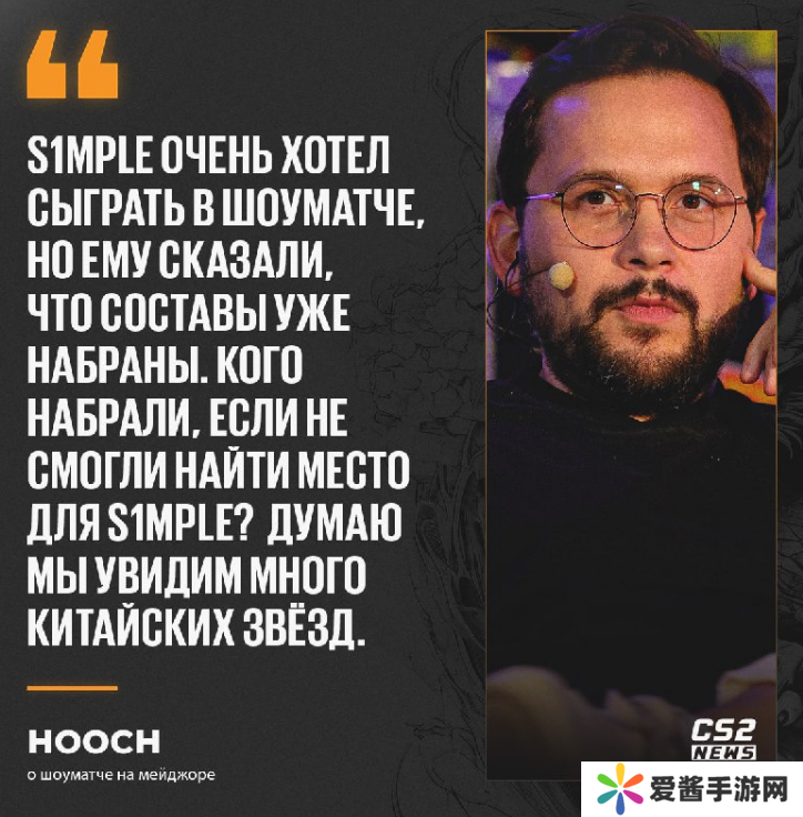 “s1mple很想参加Major表演赛,但是主办方告诉他说表演赛阵容已经确定好了。不知道他们会找谁呢?我觉得会是很多中国明星选手。”