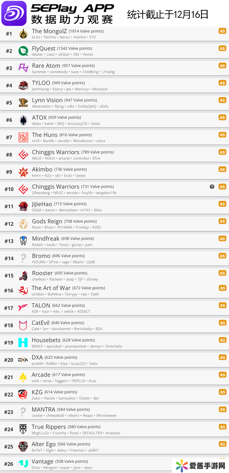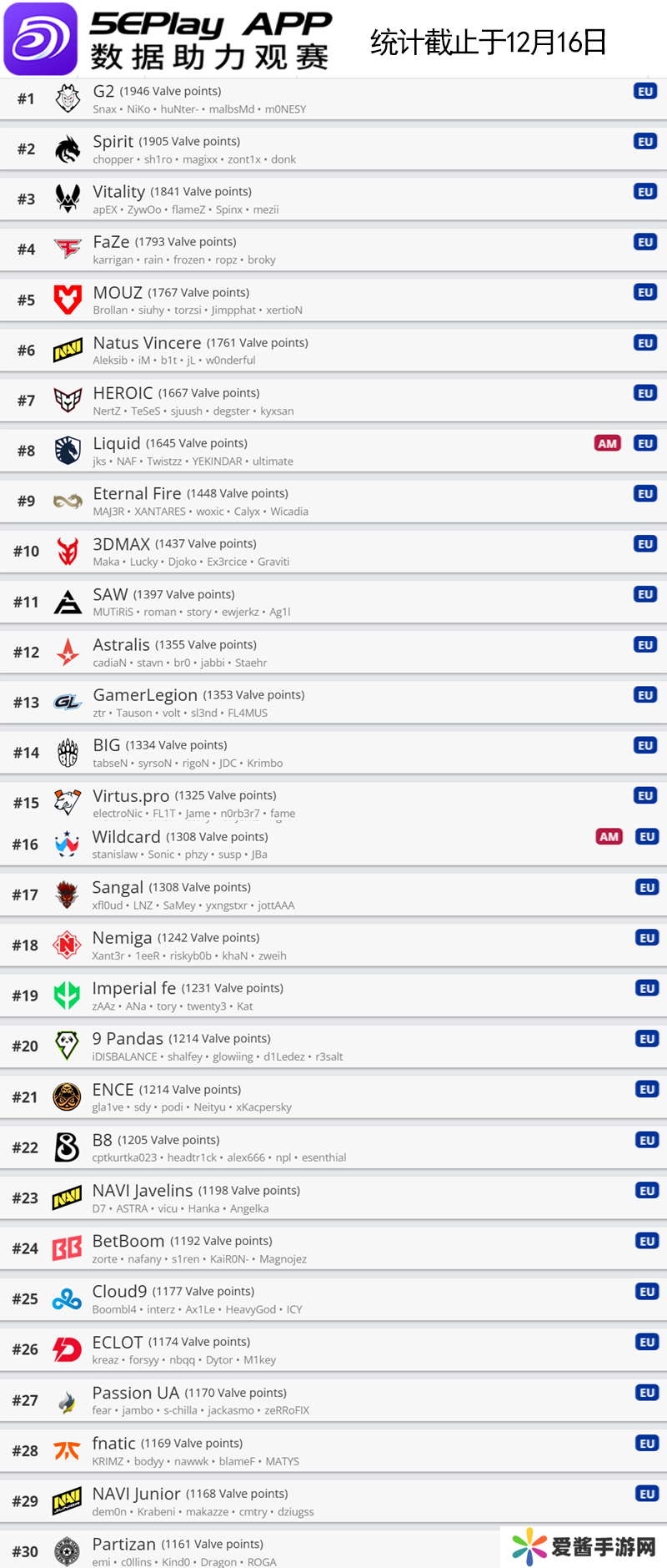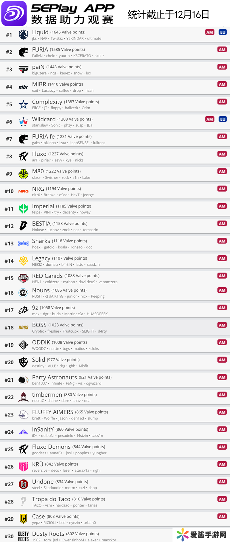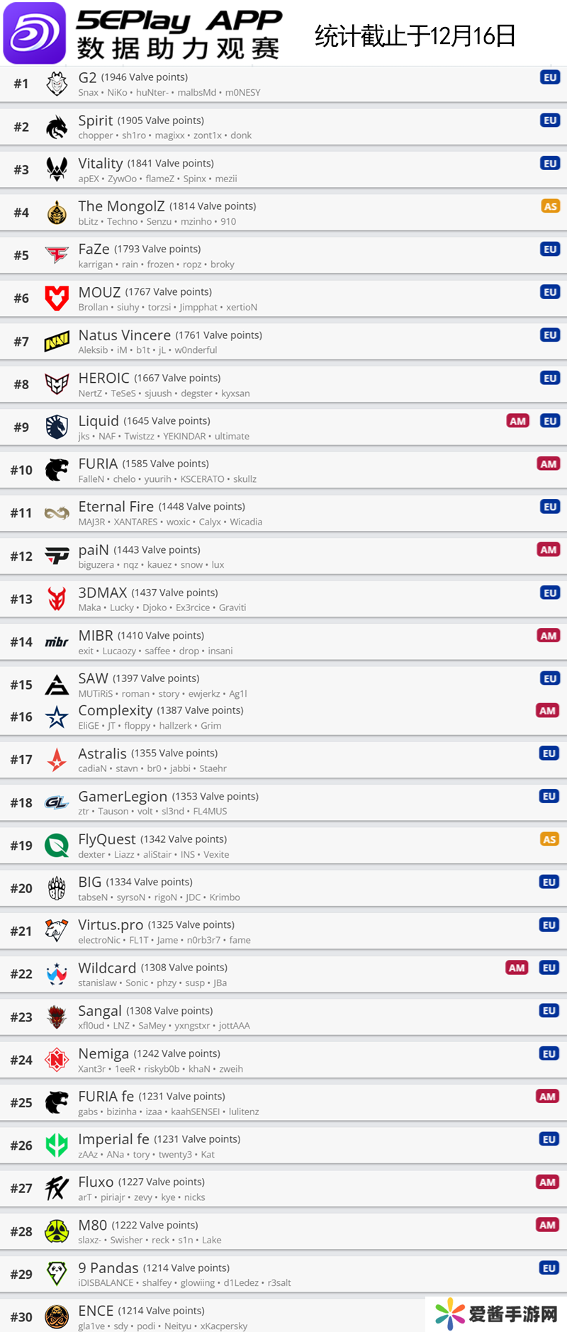 今天V社更新了旗下CS世界排名,这一世界排名会和明年的赛事邀请紧密联系,因此是主办方和战队都必须关注的内容。