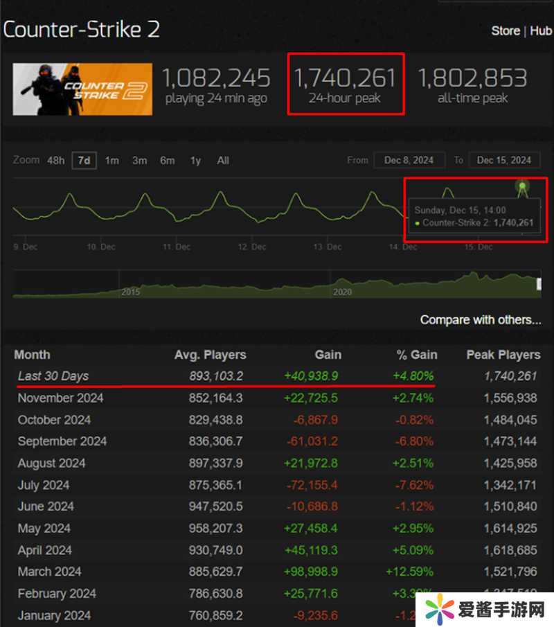 虽然上海Major已经结束,但玩家们依旧热情不减,在过去一天里,CS新版本峰值同时在线人数达到了1740261人。