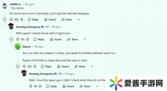 此外名为“Amazing_Emergency_69”的reddit用户发帖表示,自己已经在游戏中收集了所有可用的升级内容,并且多次击败最终BOSS,但仍旧无法解锁与阿克琉斯相关的武器形态(已多次同阿克琉斯交谈)。