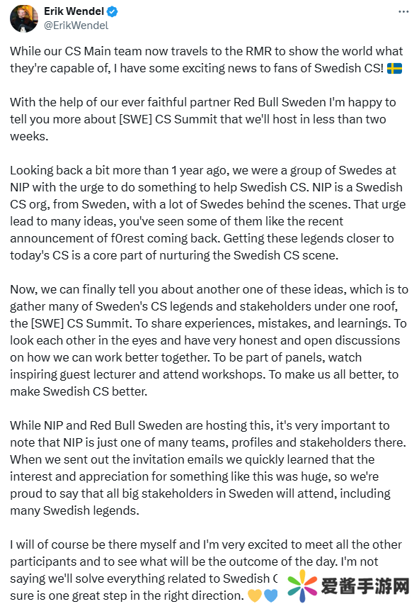 “当我们的CS主队现在前往上海Major 欧洲RMR向世界展示他们的能力时,我也有一些令人兴奋的消息要告诉瑞典CS的粉丝们!