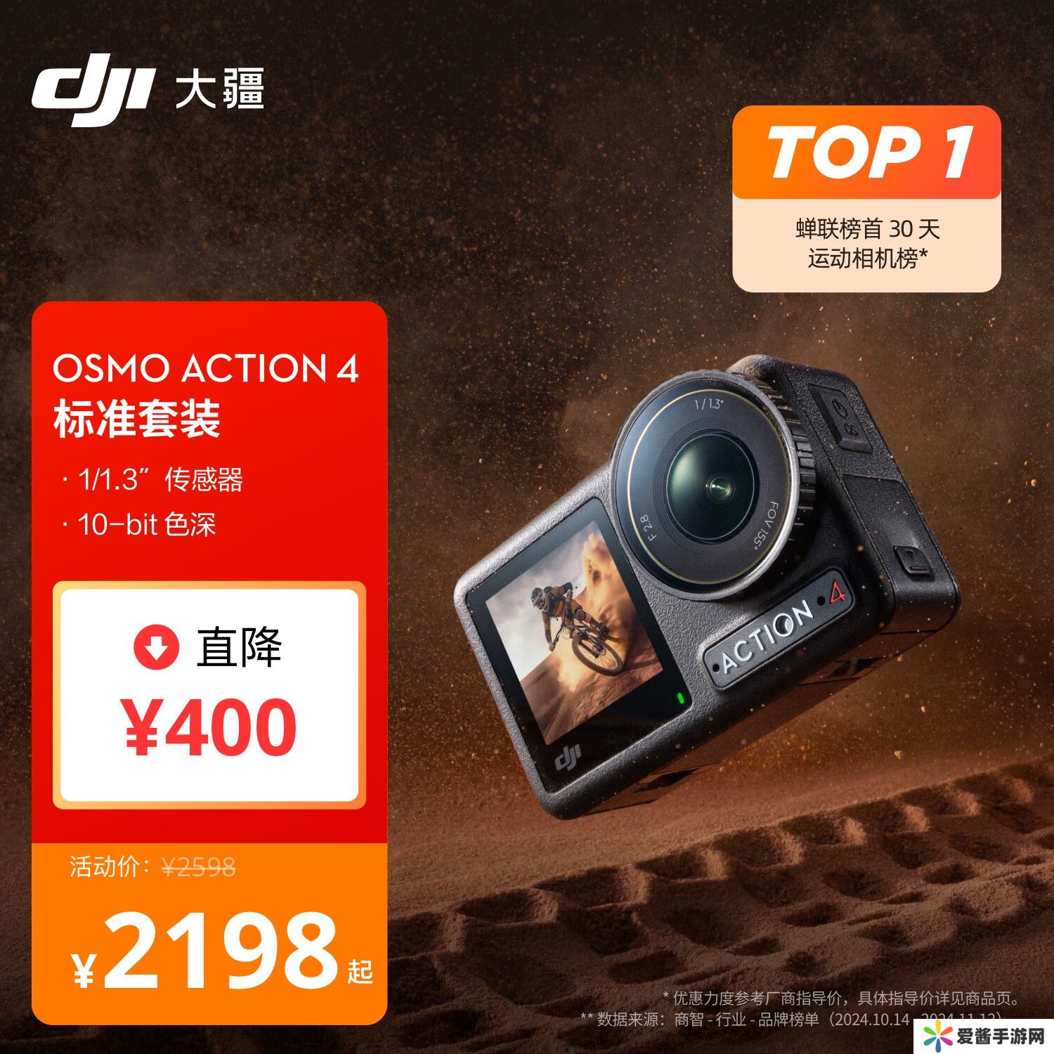 京东大疆 DJI Osmo Action 4 灵眸运动相机 防抖户外 vlog 相机 2198 元直达链接