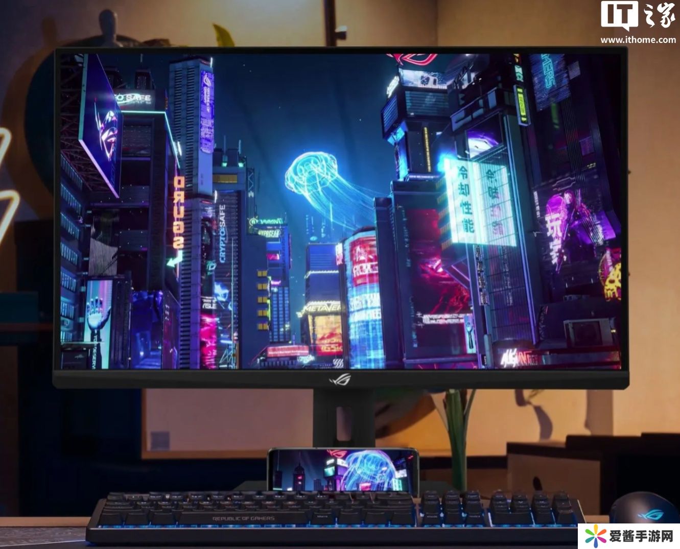 此外,本站注意到这款显示器自带一个可以放手机的底座,显示器支架支持升降旋转,提供1个HDMI 2.0 接口、1 个DP1.4 接口、1 个 USB-C接口。