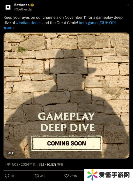 贝塞斯达官方日前宣布,工作室将于美国东部时间 2024 年 11 月 11 日上午 10 点(北京时间 11 月 11 日晚上 11 点)发布即将推出的《夺宝奇兵:古老之圈》游戏玩法深度演示。