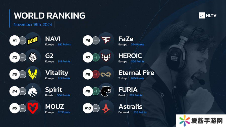 一起看看最新HLTV世界排名吧。