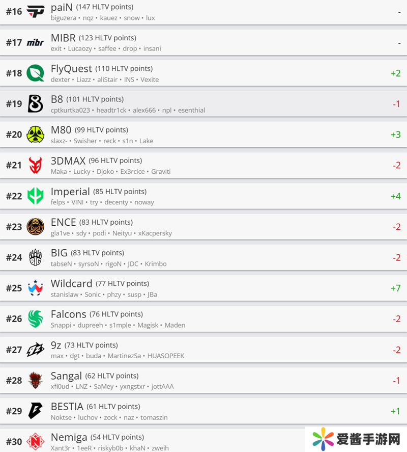 今天HLTV发布了最新一期的世界排名。相比于之前的排名,本次世界排名变化不大。