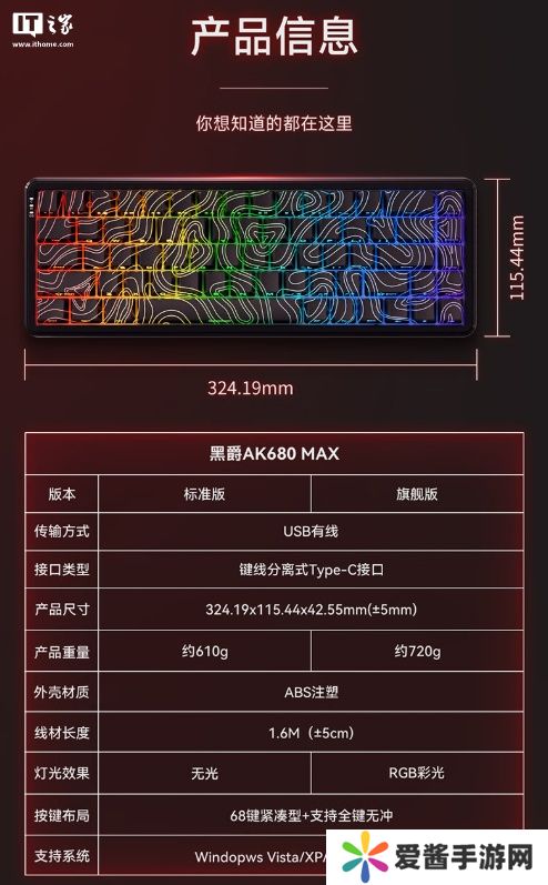 本站附黑爵 AK680 MAX 磁轴键盘亮点、产品信息如下: