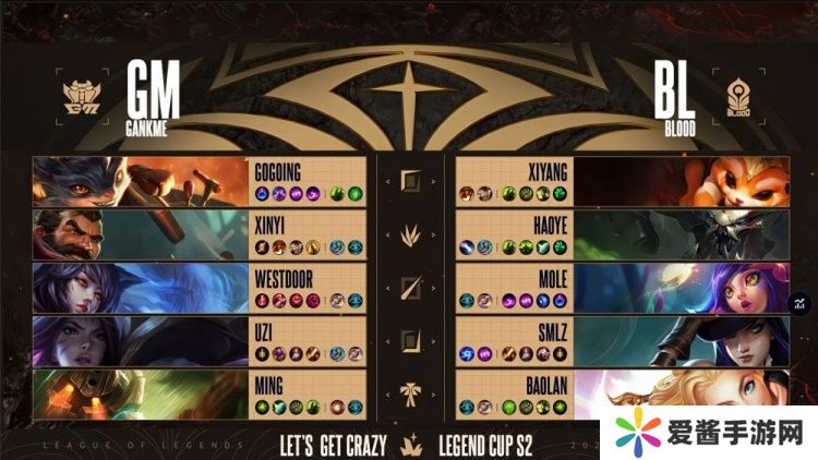 蓝色方Uzi队:Gogoing兰博、Xinyi男枪、Westdoor狐狸、Uzi(C)卡莎、Ming泰坦