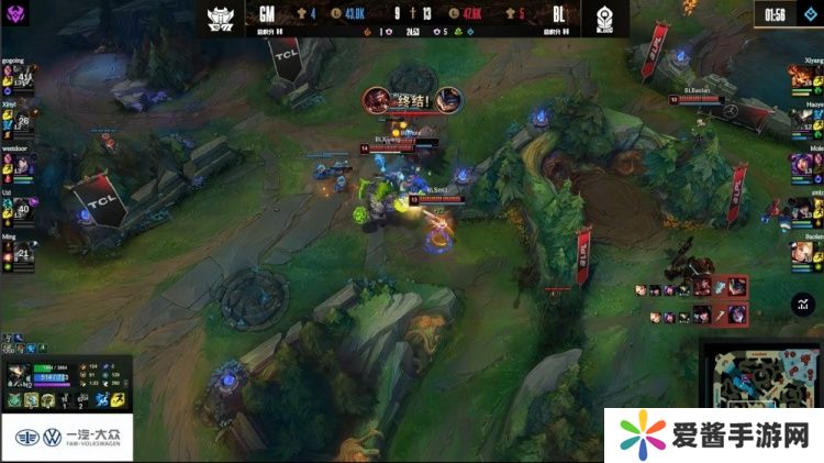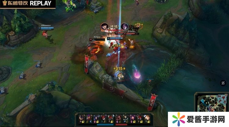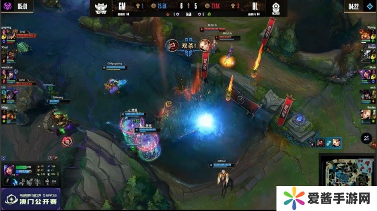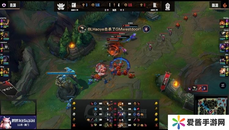 【1:25】河道一级团,Ming泰坦扫描先钩Haoye,但自己送蝎子一血,随后双方激情互A,Uzi卡莎带走Haoye,Smlz女警追着西门狐狸狂打,Baolan拉克丝Q闪捆住男枪,Smlz持续输出和平使者出手拿到Xinyi的积分,Mole收掉残血西门,Baolan队打出1换3。