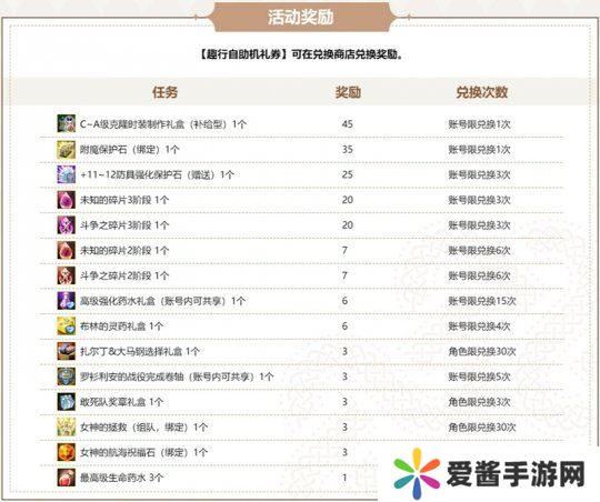 其中就有C~A级克隆时装制作礼券(补给型)、附魔保护石等各种实用且高价值的道具,不过每种道具都是有兑换条件与次数限制的,大家可以根据自己的需要分配哦!