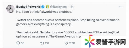 而后在各大游戏奖项评选中,《幻兽帕鲁》也都未获得提名,这与其所取得的国际影响力完全不成正比。因此,不少玩家都在网上为其鸣不平。但Pocketpair 的社群经理Bucky却在呼吁玩家们冷静点,并表态:“这次的提名名单不存在任何阴谋。”