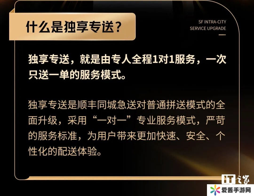 本站 12 月 2 日消息,顺丰同城于上周宣布上线“独享专送”服务,即由专人全程 1 对 1 服务,一次只送一单的服务模式。