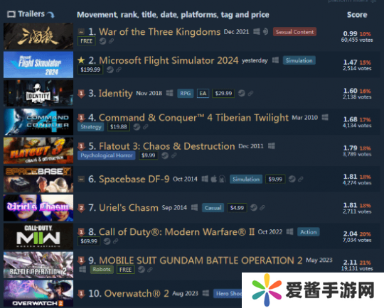 2024年仅剩一个月,有分量的3A大作也越来越少了。由于Steam秋促将在28日凌晨开启,可以预见的是未来几周,将会有大量经典游戏冲进TOP 10名单。