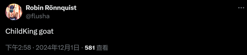 而瑞典老将flusha无疑也在观看着fnatic和RA的这场比赛,在看到ChildKing的发挥之后,flusha在社交平台上发布动态,感慨子豪就是goat。