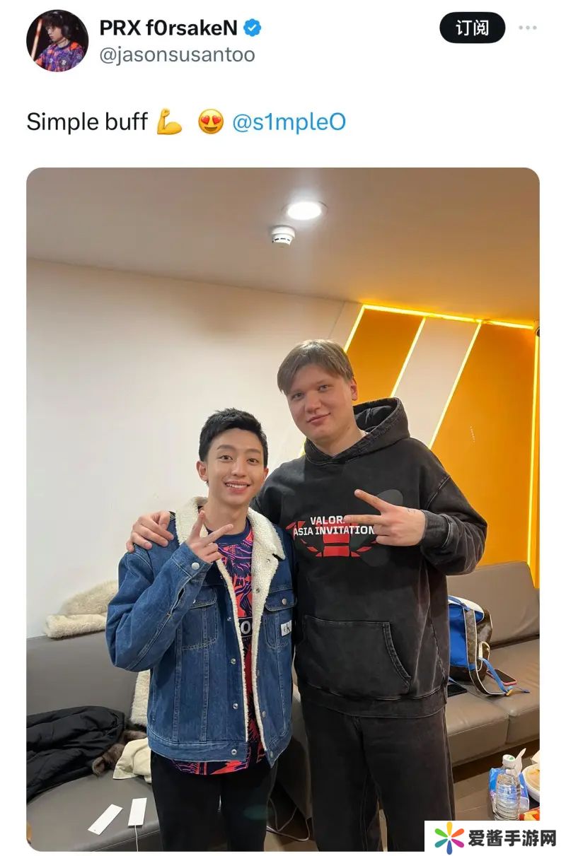 f0rsakeN晒与s1mple合影并配文:s1mple buff