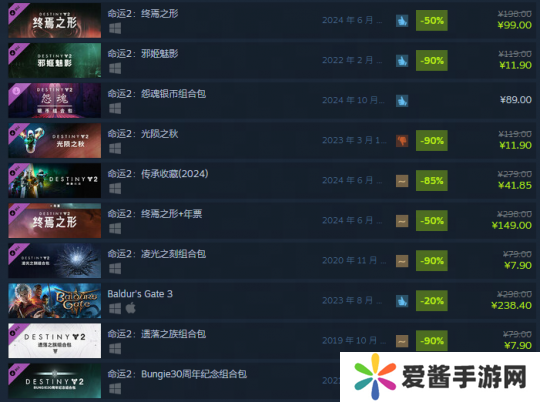 由Bungie制作并发行的FPS大作《命运2》秋季促销将于11月28日重磅登场,11月28日 - 12月4日以及12月19日 - 1月2日期间,众多DLC和组合包都有大幅度折扣,折扣力度史无前例,是玩家们绝不能错过的一场优惠狂欢!玩家可在Steam平台以新史低价五折入手《命运2:终焉之形》,原价198元,现入手仅需99元!《命运2:终焉之形》+年票组合原价298元,现五折入手仅需149元,《命运2:终焉之形》年票升级原价100元,现五折入手仅需50元!热爱《命运2》的玩家们可以趁此机会以更优惠的价格入手这些拓展内容,加入到充满冒险的游戏之旅中。