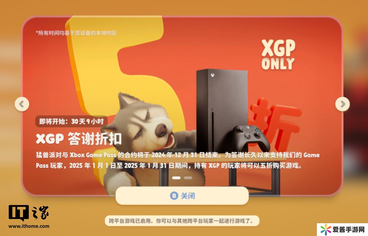 本站本月初(12 月 1 日)报道,国产多人游戏《猛兽派对》(原名《动物派对》)发布公告,宣布因合作到期,游戏将于 2024 年 12 月 31 日离开微软 Xbox Game Pass 阵容。持有 Xbox Game Pass 会籍的用户可在 1 月 1 日至 1 月 31 日期间以五折购买该游戏: