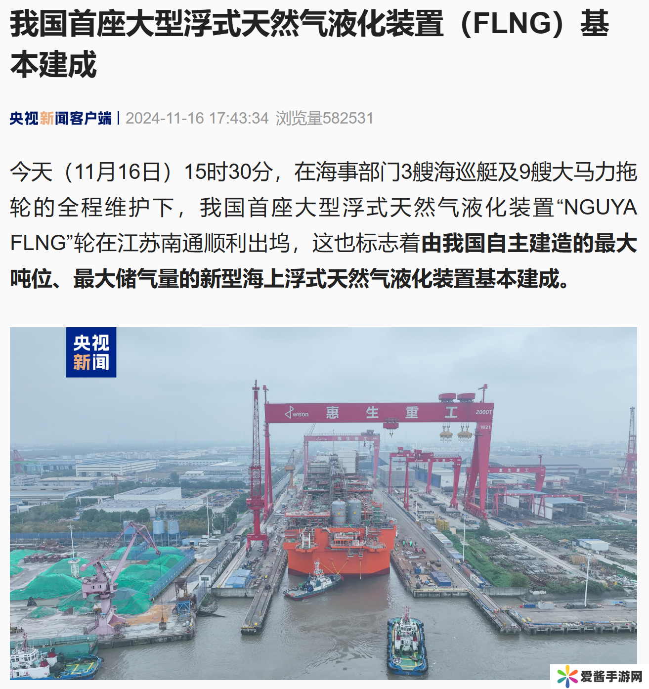 本站 11 月 17 日消息,据央视新闻报道,我国首座大型浮式天然气液化装置“NGUYA FLNG”轮昨日在江苏南通顺利出坞,这也标志着由我国自主建造的最大吨位、最大储气量的新型海上浮式天然气液化装置基本建成。