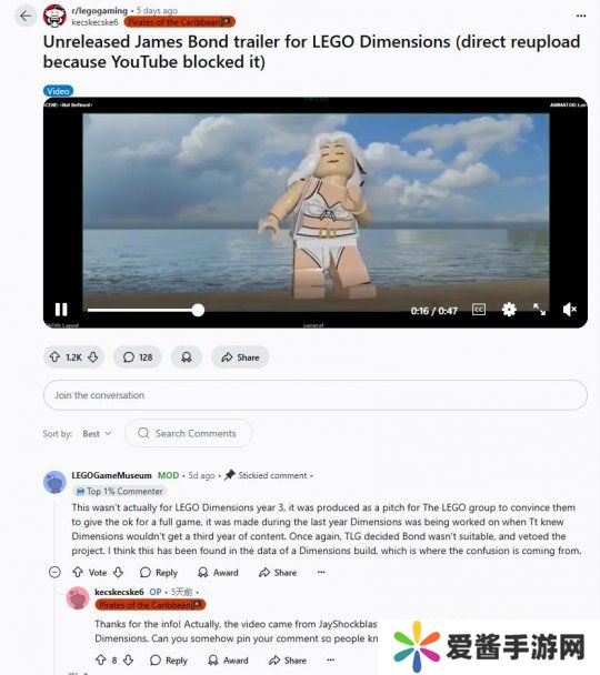 不过在该视频链接的评论区有人补充了相关内容,表示这并非是为了《乐高次元》这款游戏的年3制作的,而是在《乐高次元》开发的最后一年决定的,因为当时确认了不会有年3的内容。