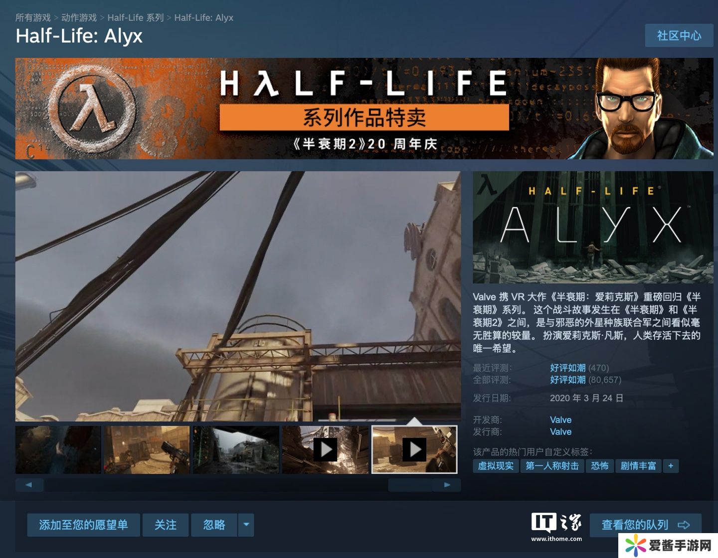 本站 11 月 16 日消息,伴随着《半衰期 2(半条命 2)》迎来20周年,今天V社宣布旗下 VR 游戏大作《半衰期:艾莉克斯(半条命:Alyx)》迎来3.5 折史低优惠,游戏原价198元,现3.4折后到手价67.32元,游戏优惠将于11月23日结束,本站附游戏商品页如下(点此访问)。