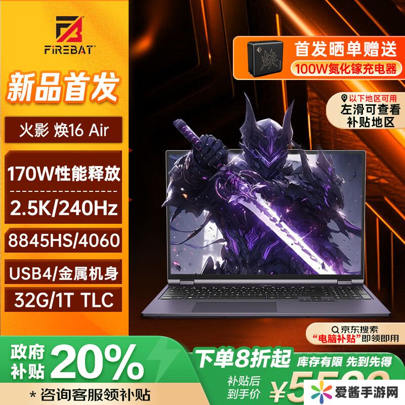 本站 11 月 16 日消息,火影焕16 Air游戏本新增配置现已上架京东,该版本采用“AMD R7 8845HS + 32GB RAM + 1TB 存储空间+ RTX 4060”规格,定价为6999元,将于11月25 日0点开售。