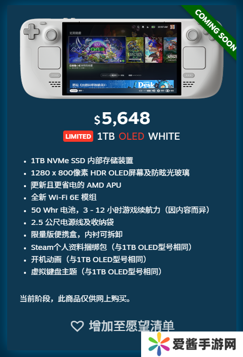 为了防止黄牛党,V社限制每个账户只能订购一台白色 Steam Deck,且使用的 Steam 账户必须在 2024 年 11 月之前至少有一次购买记录。
