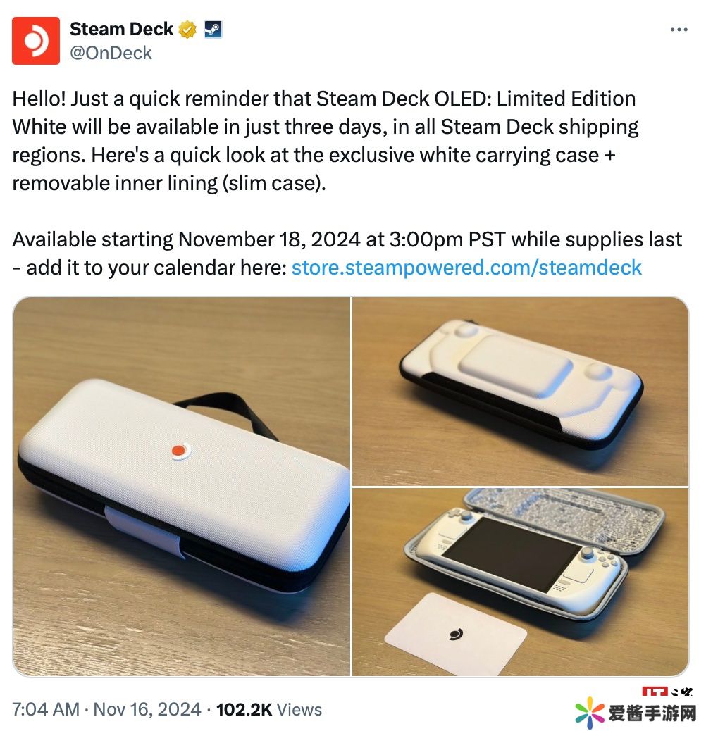 除机身配色之外,限量版白色SteamDeck还将提供配套的白色便携包和超细纤维清洁布。