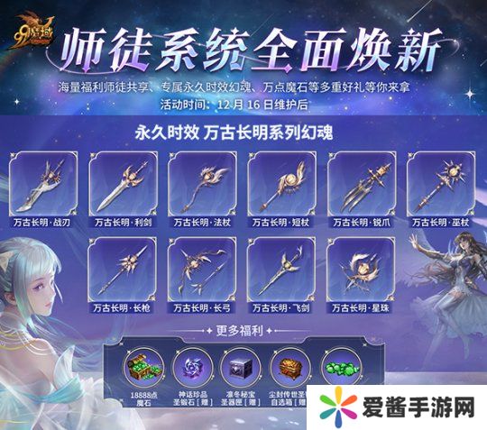 随着12月16日重大活动“世界树:新生之章”的临近,游戏内已经开启了火热预约。预绑定师徒关系活动即将开启,勇士们可以提前绑定师徒关系,参与活动赢取丰厚奖励。最高可赢8888点魔石!当活动更新后,若预绑定师徒双方在游戏内正式结成师徒关系,更可额外获得好礼,赢取高达18888点魔石的奖励!