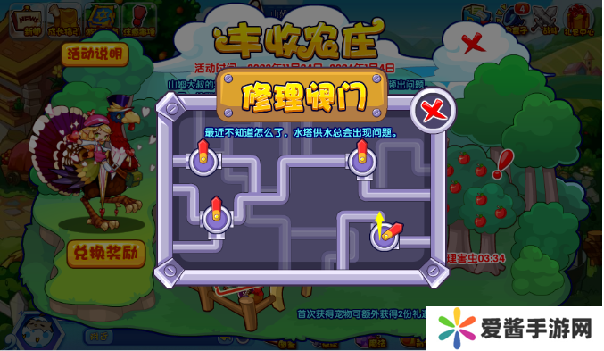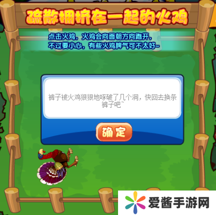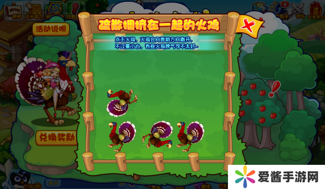 将围栏内拥挤的火鸡进行疏散即可,火鸡会自动朝面向方向跑开,点击错误系统会提示,这个没啥难度,但是如果火鸡暴走,就会触发与特坑进行挑战,战胜即可。