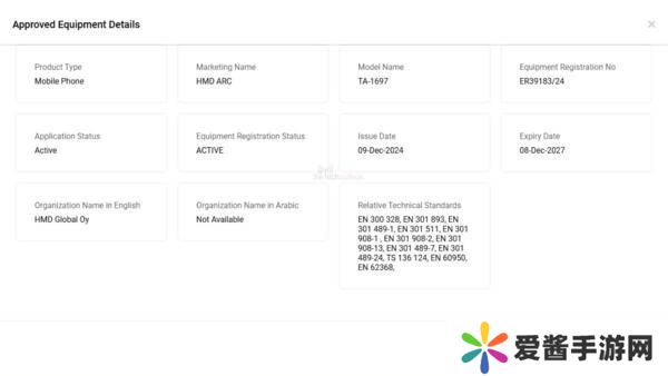 进一步挖掘发现,TDRA认证平台上也披露了HMD ARC的更多细节。该手机型号为“TA-1697”,并获得了编号为“ER39183/24”的设备注册认证,有效期直至2027年底。官方将其定义为“手机”,这一分类简单明了,易于消费者理解。