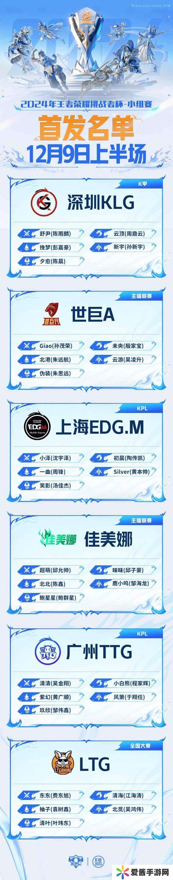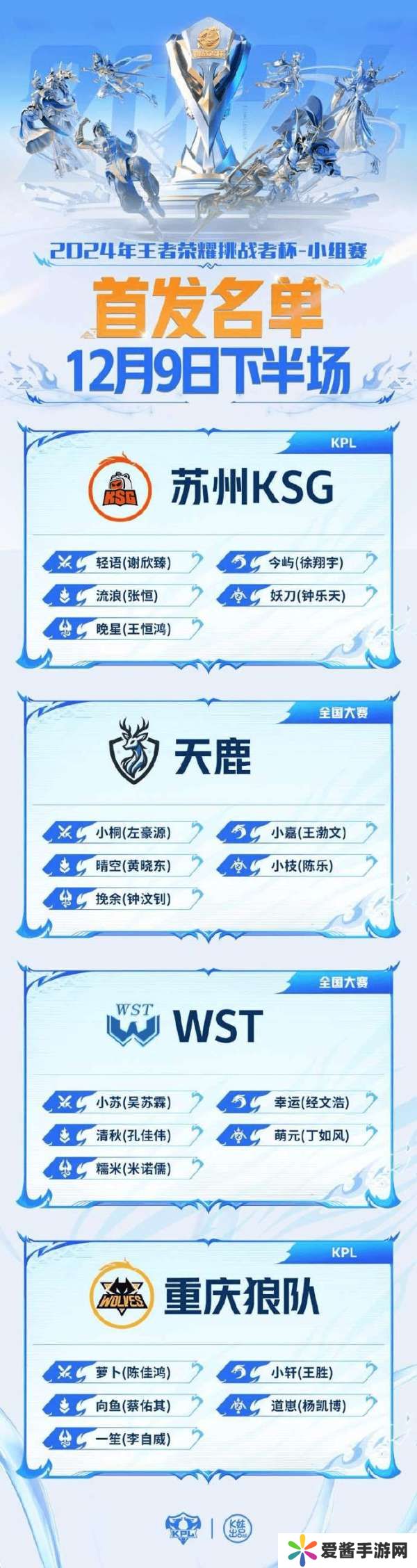 2024年王者荣耀挑战者杯 小组赛W1D3【首发名单】送达 !