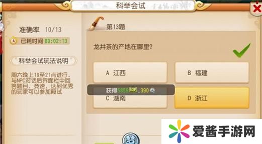 乡试:通常在周一至周五晚上19点-21点进行,这是一个单人任务,玩家等级达到30级即可参与。乡试中,玩家可以通过答题获得经验及特定道具,还有机会获得科举法宝,如“天王令”和“地王令”。其中,天王令可以在答题时使玩家100%选择正确答案,跳过读题和选答案的时间。