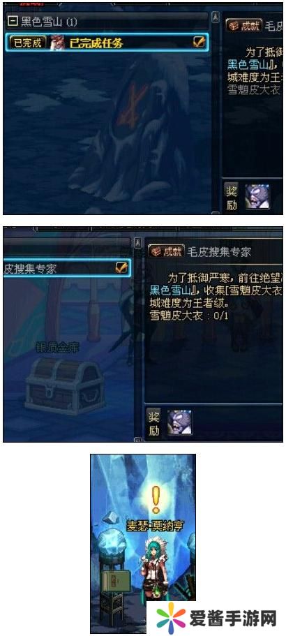 任务开启后,玩家需要前往指定的地图区域,如绝望冰崖的黑色雪山。这个区域是毛皮的主要产出地,玩家需要在这里寻找并击败特定的BOSS。