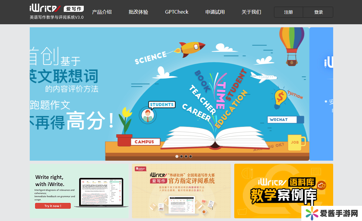打开浏览器,输入上方网址,即可直达iWrite英语写作教学与评阅系统的官方网站。