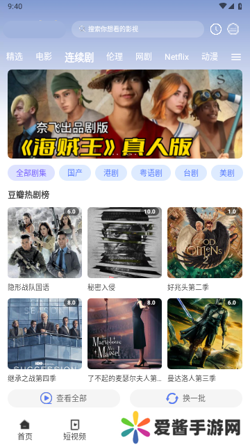 欧乐影视是一款主打免费追剧的影视播放软件,在首页左右滑动就能更换视频版块,剧迷们可以根据自己的喜好选择观看电影、电视剧或综艺等。根据观众们的追剧偏好进行分析,为剧迷们定制个性化的视频播放合集。想看什么电视剧直接输入影片名称搜索,并且每一部影片都设置了多个视频播放源,通过更换播放源享受更清晰的追剧体验。