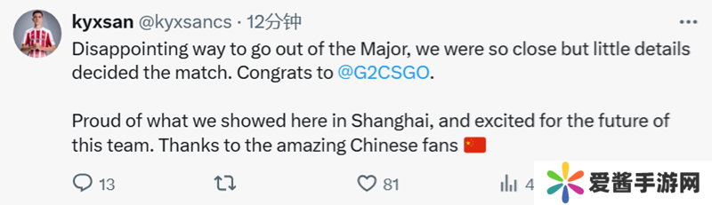 kyxsan:以失望的方式告别Major。我们如此接近,但最终细节决定成败。祝贺G2。