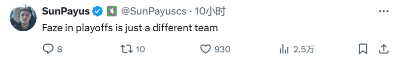 FaZe的救赎等等都让人对这场BO3热血沸腾。而在这场半决赛结束之后,社区人士也分享了自己的感受。