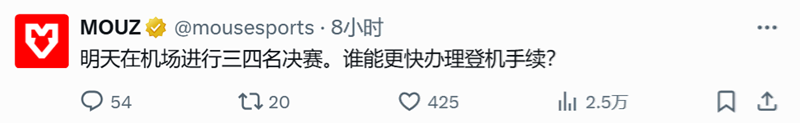 MOUZ:明天在机场进行三四名决赛。谁能更快办理登机手续?