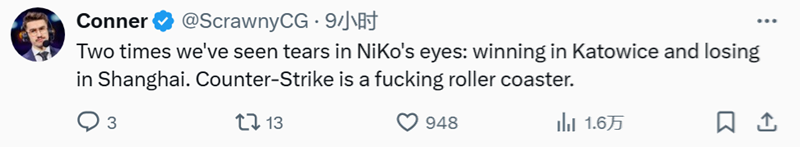 Scrawny:我们曾两次在NiKo的眼中看到泪水:在卡托维兹获胜和在上海失利。CS就是一辆过山车。