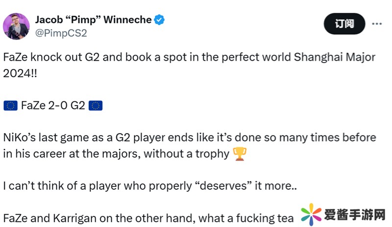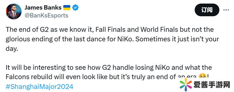 Banks:如我们所知这就是G2的结束。虽然是秋季决赛和世界总决赛冠军,但对于NiKo来说他的最后一舞并不光彩。有时候确实天意弄人。