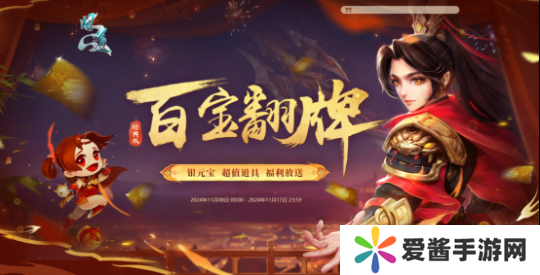 活动期间,可以在游戏界面右上角点击“百宝翻牌”按钮参与活动。通过将三张图片凑成同一图案,便有机会赢得元宝、道具、积分等多种奖励。