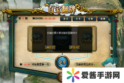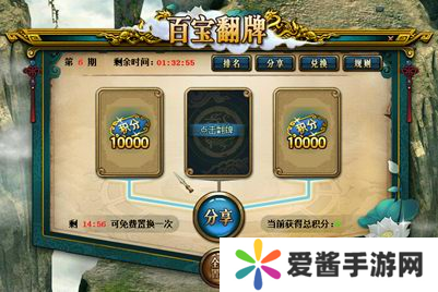 此外,玩家还可以在分享页面获取他人分享的两张相同图案。当玩家的翻牌状态处于A+A+B的状态下,就可以进行分享操作,分享后将额外获得积分奖励。每位玩家每日最多可分享20次,每日最多可获得200点积分,这些积分可用于兑换超级神兽丹、道具套餐卡、超级绿水晶等多种实用道具。在百宝翻牌的过程中,还有概率翻出幸运的万能图片,它能够代替任意的置换图片。